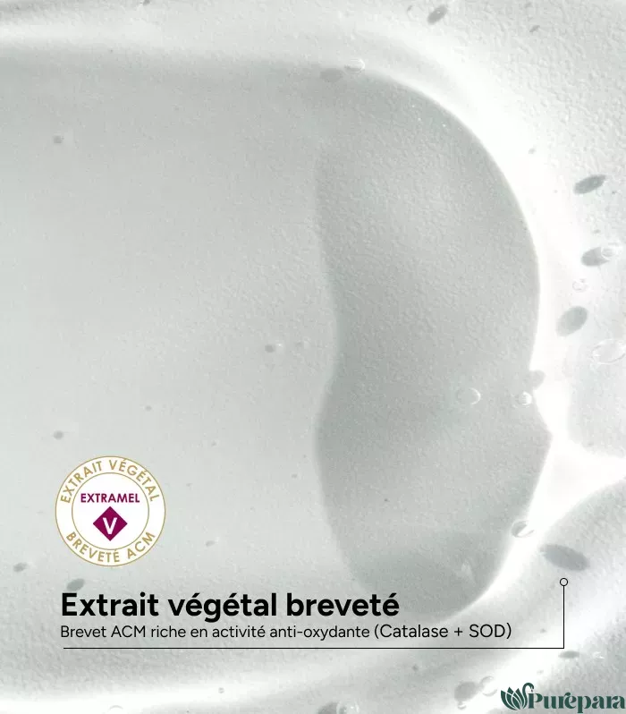 Extrait végétal breveté: Cet extrait de melon breveté est concentré en Catalase et SOD pour améliorer l’équilibre physiologique en radicaux libres et protéger les cellules contre le stress oxydatif connu pour être à l’origine du Vitiligo. La SOD est l’anti-oxydant primaire le plus puissant connu, son efficacité est renforcée par la présence de Catalase.