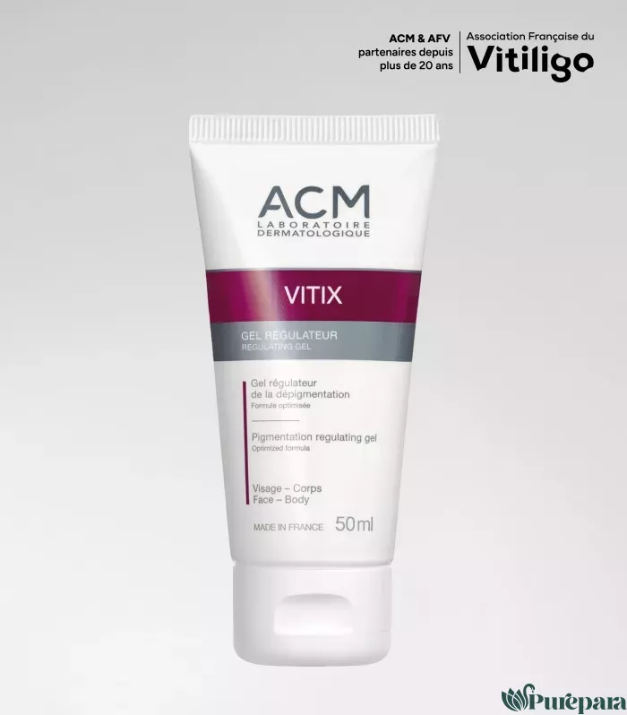 Vitix Gel Régulateur a été spécialement formulé pour réguler la dépigmentation de la peau. Il améliore également les résultats des traitements repigmentants (photothérapie UVB, héliothérapie) pour les personnes atteintes de Vitiligo