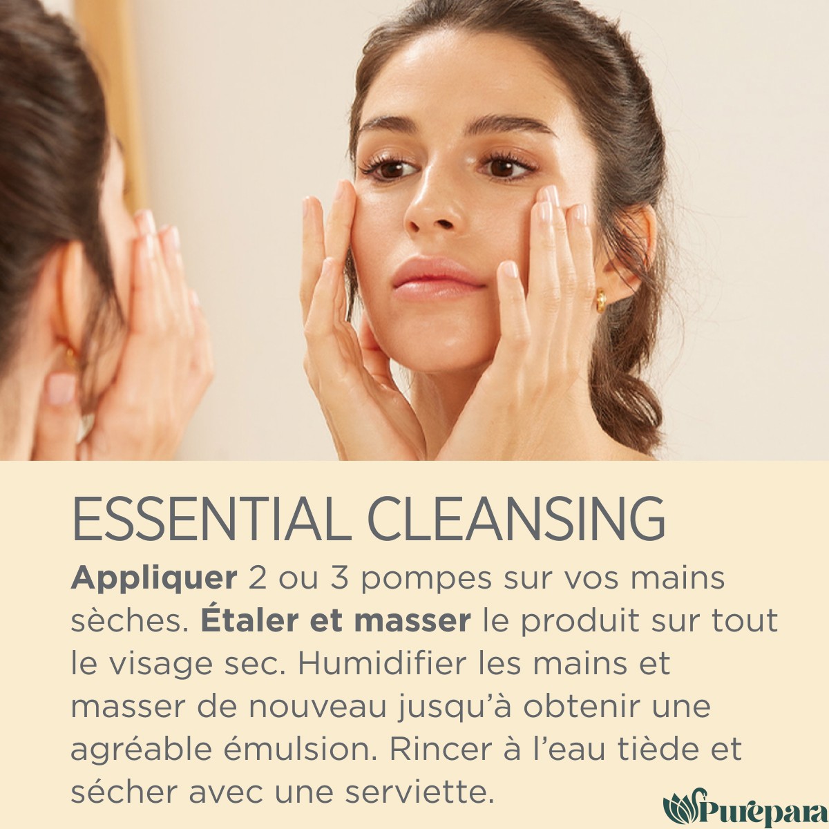 Essential Cleansing est une huile nettoyante et démaquillante pour le visage douce et légère avec une texture oil-to-milk qui utilise la puissance de l’huile pour nettoyer la peau en profondeur. Au contact de l’eau, il se transforme en une émulsion agréable qui laisse la peau douce et hydratée.